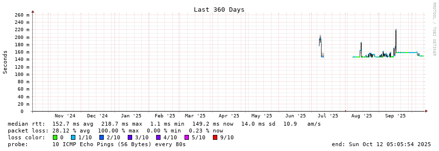 traceroute to 216.218.221.6 (216.218.221.6), 30 hops max, 60 byte packets - Generated at 2025-10-12 01:30:01