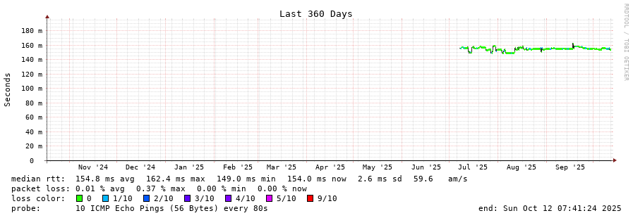 traceroute to 213.133.107.7 (213.133.107.7), 30 hops max, 60 byte packets - Generated at 2025-10-12 01:30:01