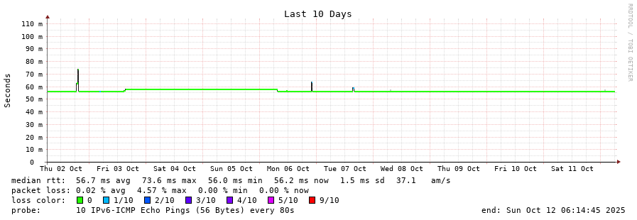 12 > yto1-yyz01.smokeping.ovh.net (2607:5300:300:1f00::) [AS16276] 56.120ms 56.080ms 56.249ms