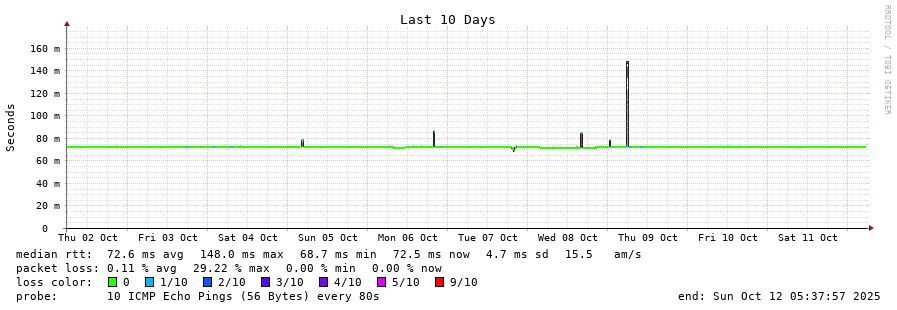 10 > 64.230.123.250 (64.230.123.250) [AS577] 70.346ms 70.272ms 70.343ms